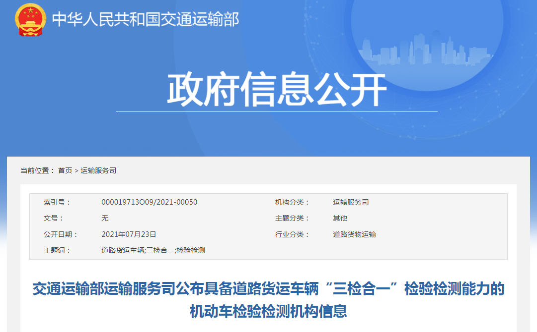 近日,交通運(yùn)輸部運(yùn)輸服務(wù)司公布了湖北省具備道路貨運(yùn)車輛“三檢...